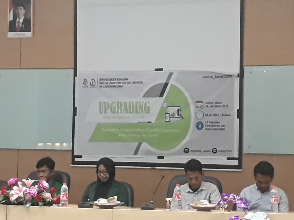 Jurnalistikuinam.com – Setelah vakum 2 tahun , pengurus Dewan Mahasiswa (Dema) Fakultas Kedokteran & Ilmu Kesehatan (FKIK) kembali menggelar upgrading di Lecture Theather (LT) . Kegiatan ini berlangsung selama 2 hari sabtu-ahad, (23-24 Maret 2019).